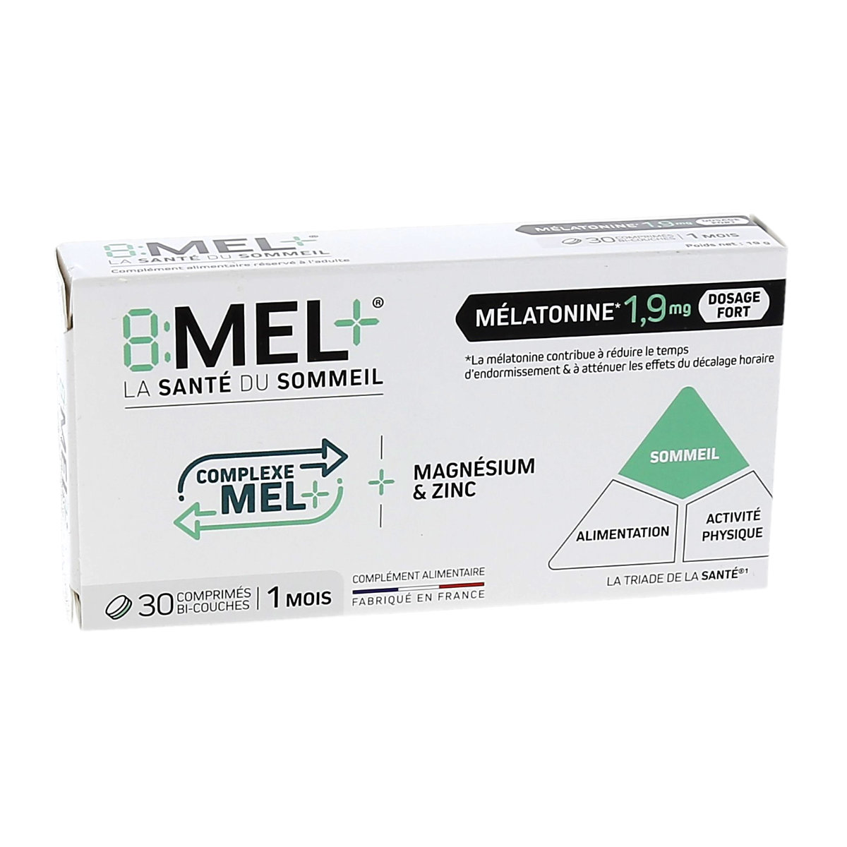 8:MEL+8:MEL+ Mélatonine 1,9mg, Dosage Fort, La Santé du Sommeil, boite de 30 comprimés bi-couches10,95€