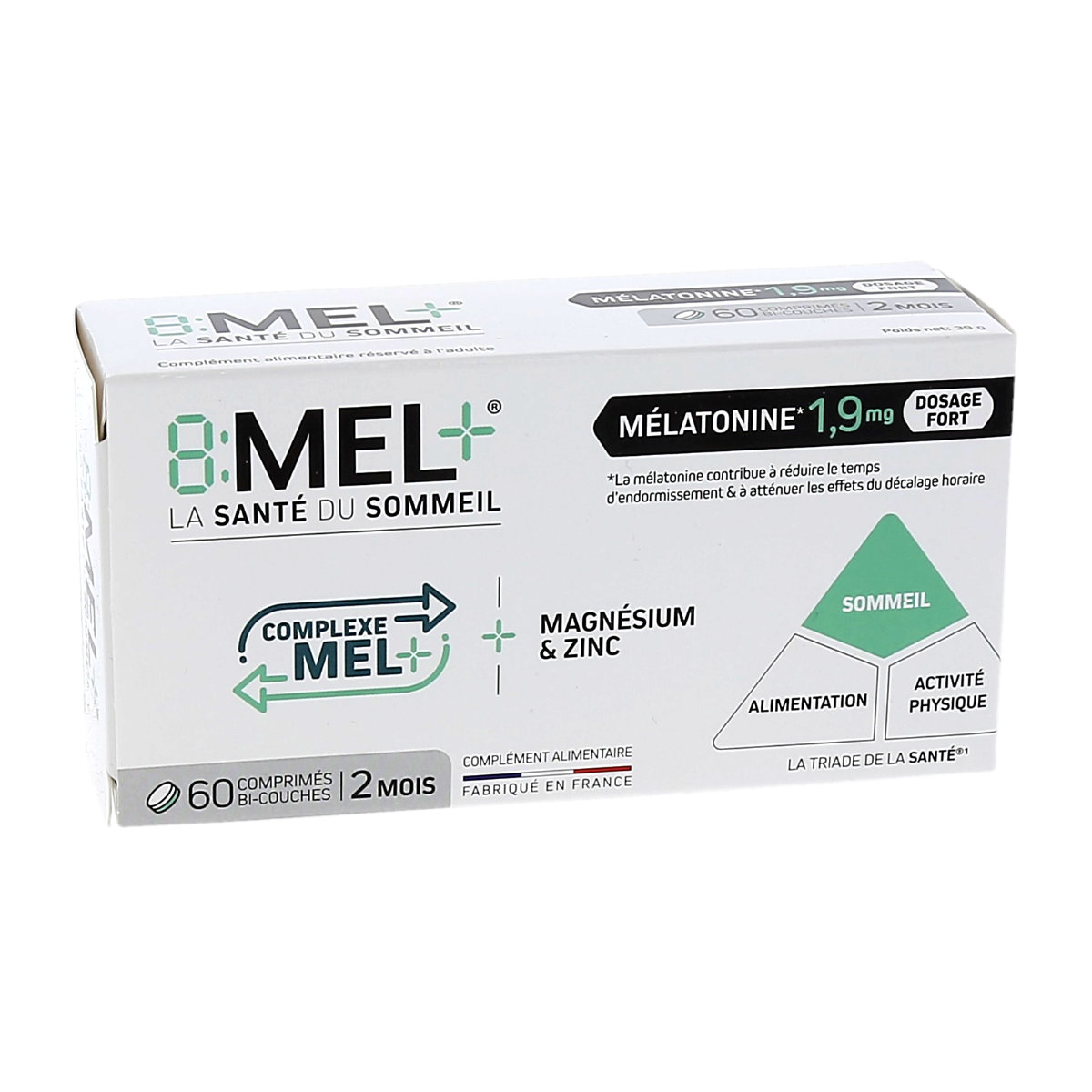 8:MEL+8:MEL+ Mélatonine 1,9mg, Dosage Fort, La Santé du Sommeil, Format 2 mois, boite de 60 comprimés bi-couches14,95€