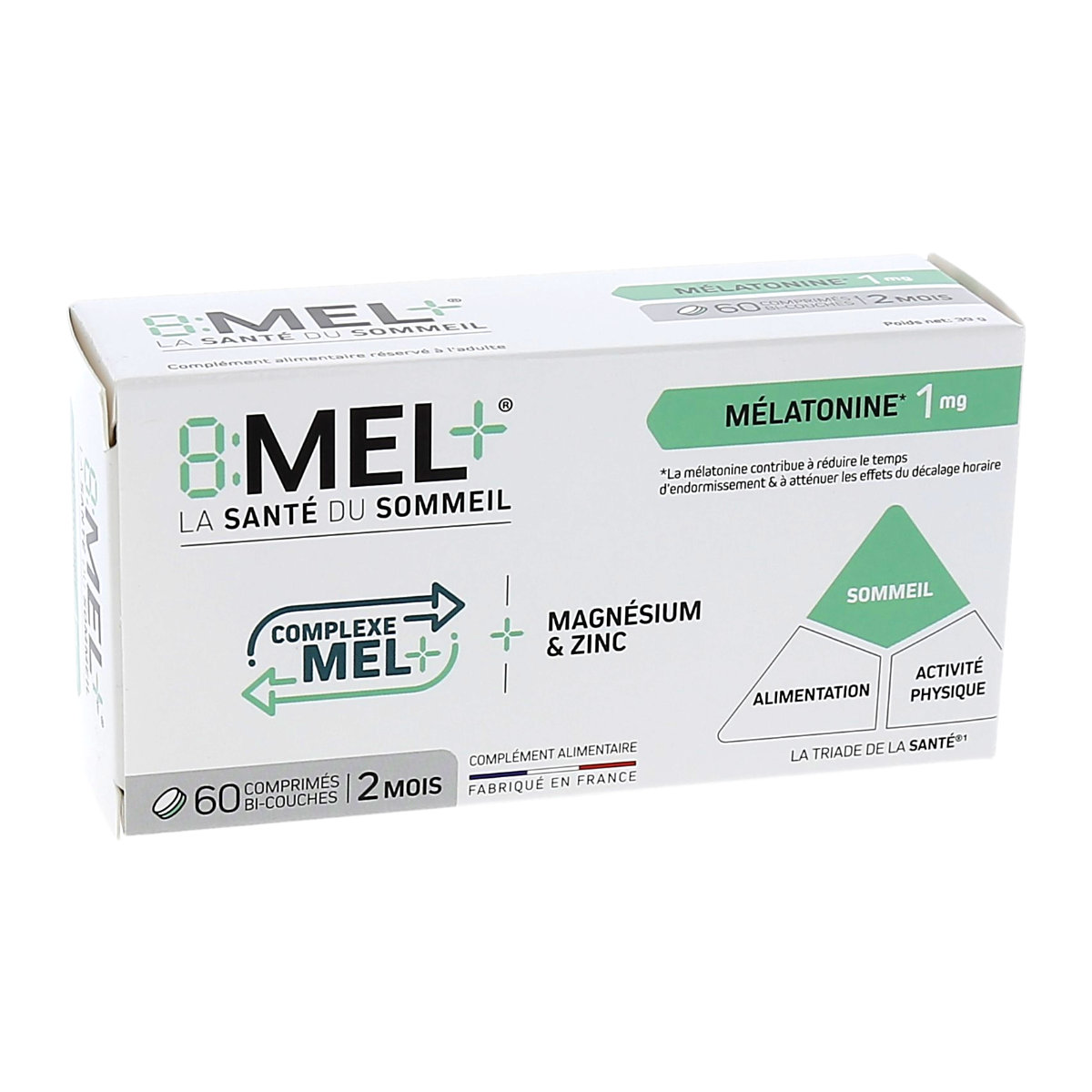 8:MEL+8:MEL+ Mélatonine 1mg, La Santé du Sommeil, Format 2 mois, boite de 60 comprimés bi-couches12,95€