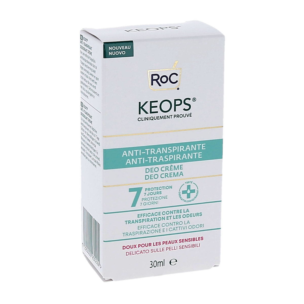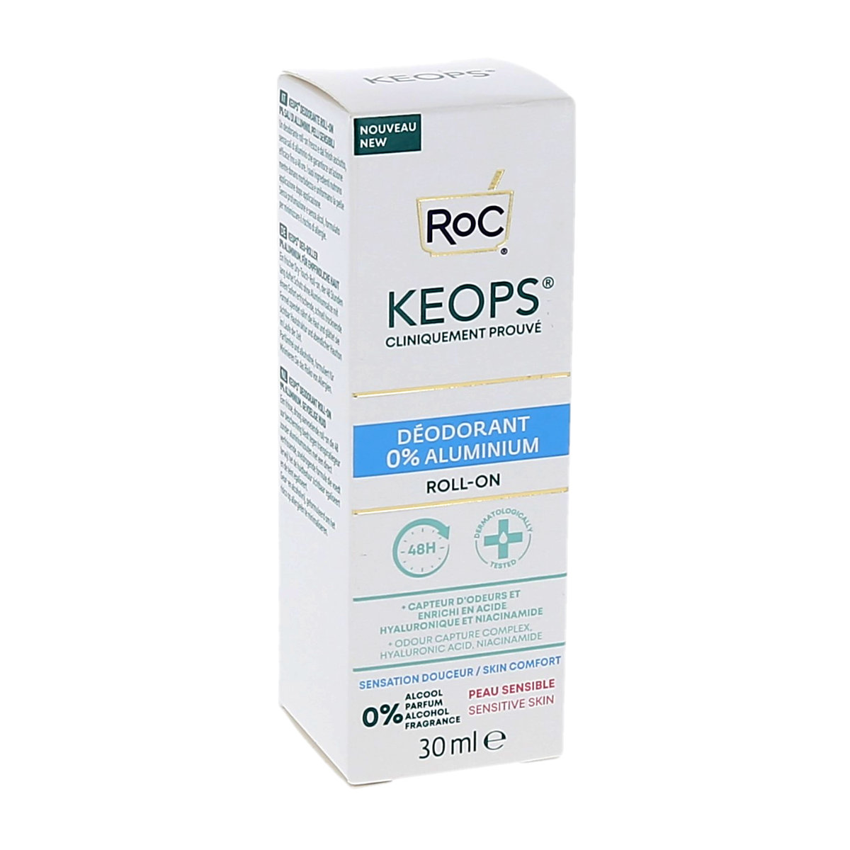 Depuis 1957, RoC est une marque pionnière de la dermocosmétique reconnue pour ses innovations en soin de la peau : 1er écran solaire à large spectre, 1er soin non comédogène, 1er soin hypoallergénique, 1er liposome, 1er rétinol stabilisé. Par la suite, Roc a créé Keops, une gamme de déodorants haute tolérance, sans parfum, sans alcool, conçus pour respecter les peaux les plus sensibles. Son objectif : lutter contre la transpiration excessive en assurant le respect du fonctionnement naturel de la peau. Des formules franchement performantes ont été développées afin d’absorber les odeurs et de réguler la transpiration pour une fraîcheur naturelle de longue durée. Il existe la version classique à bille, la version en spray et la version peau sensible.