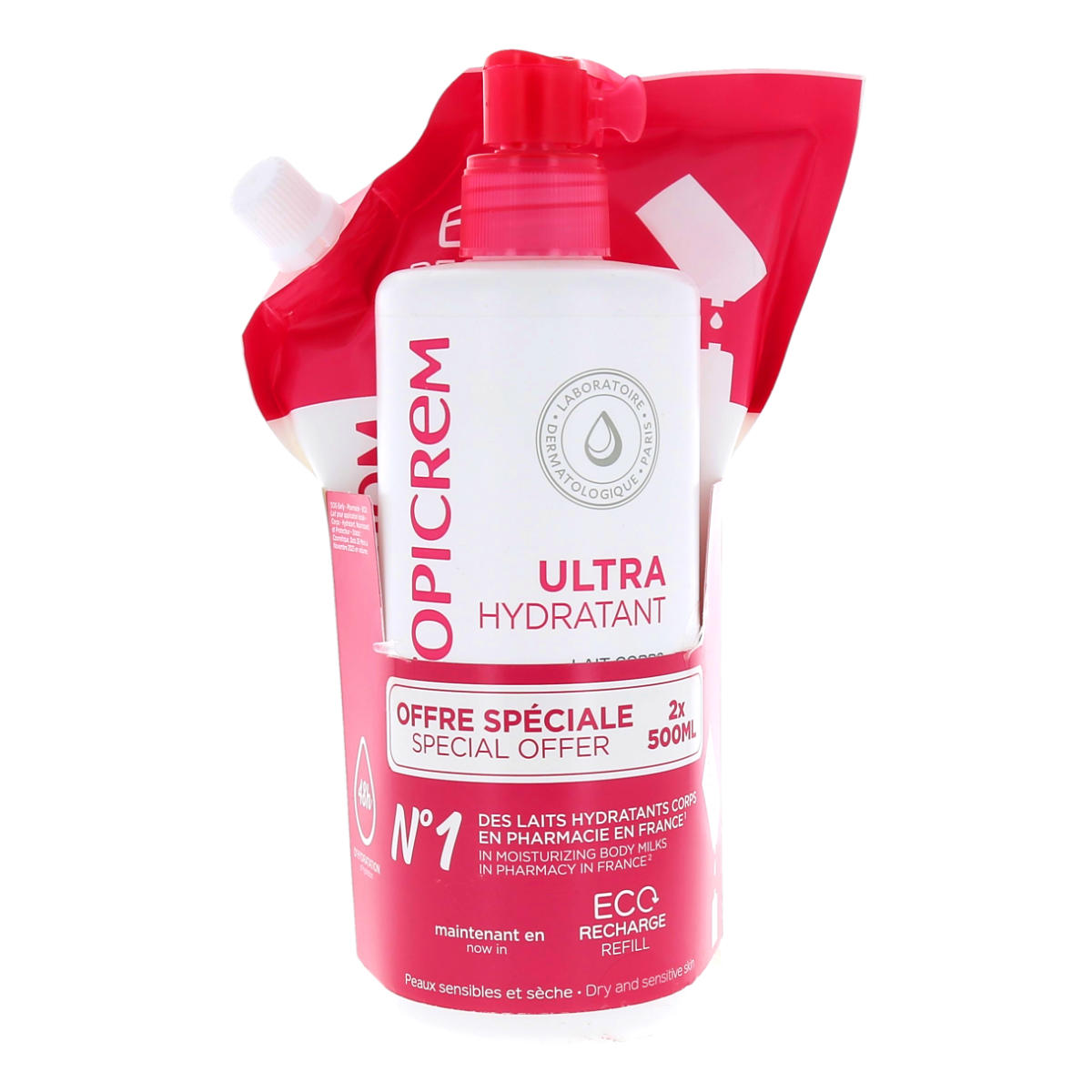 TopicremTopicrem Ultra Hydratant Lait Corps, Peaux sensibles et sèches, flacon-pompe de 500ml+recharge de 500ml21,95€