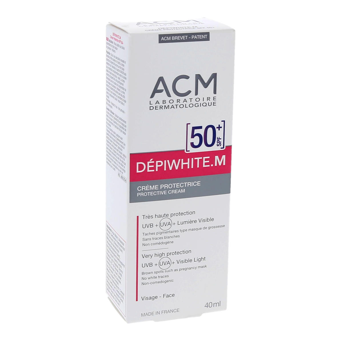 Laboratoire ACM Dépiwhite .M Crème Protectrice SPF50+ 40 ml est un soin formulé pour agir sur les taches pigmentaires type masque de grossesse.