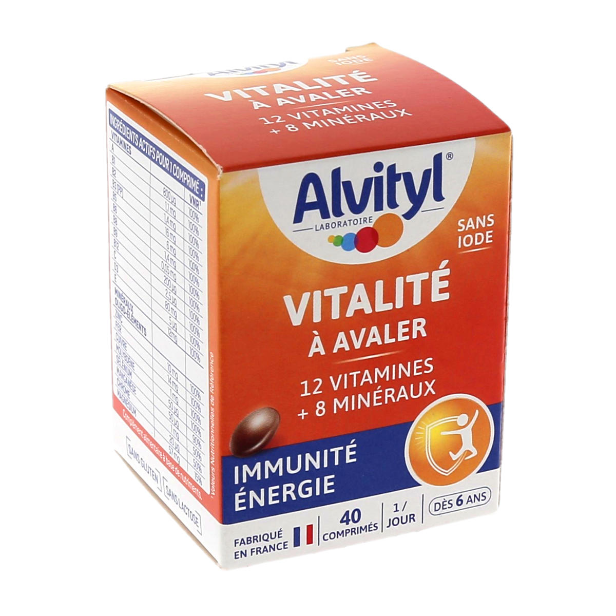 Alvityl Vitalité à avaler dès 6 ans, sans iode, Immunité/Energie, boite de 40 comprimés