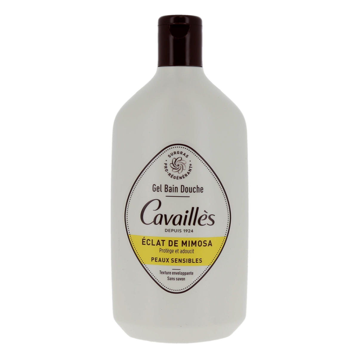 Cavaillès Gel Bain Douche Peaux Sensibles Éclat de Mimosa est un produit lavant qui protège et adoucit les peaux sensibles dès 3 ans.