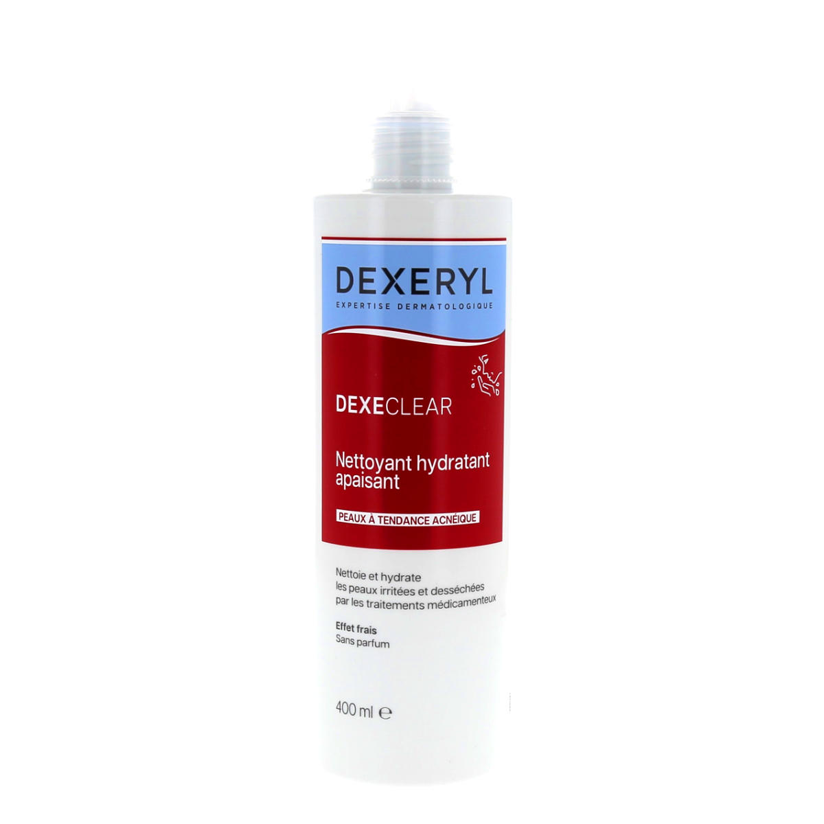 Dexeryl Dexeclear Nettoyant Hydratant Apaisant, Peaux à tendance acnéique, Effet frais/Sans parfum, flacon-pompe de 400ml