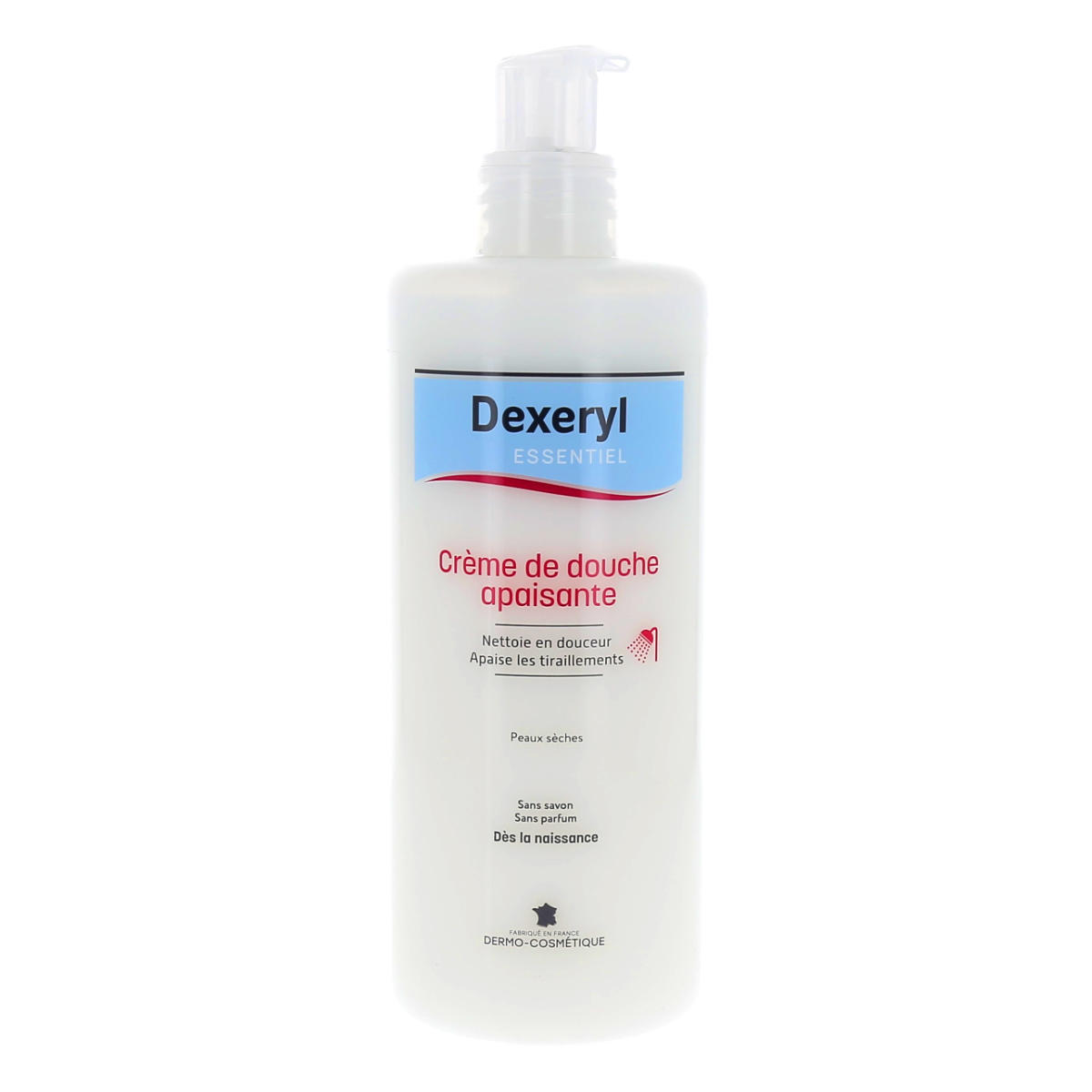 Dexeryl Essentiel Crème de Douche Apaisante, Peaux sèches, Sans savon/Sans parfum, dès la naissance, flacon-pompe de 500ml
