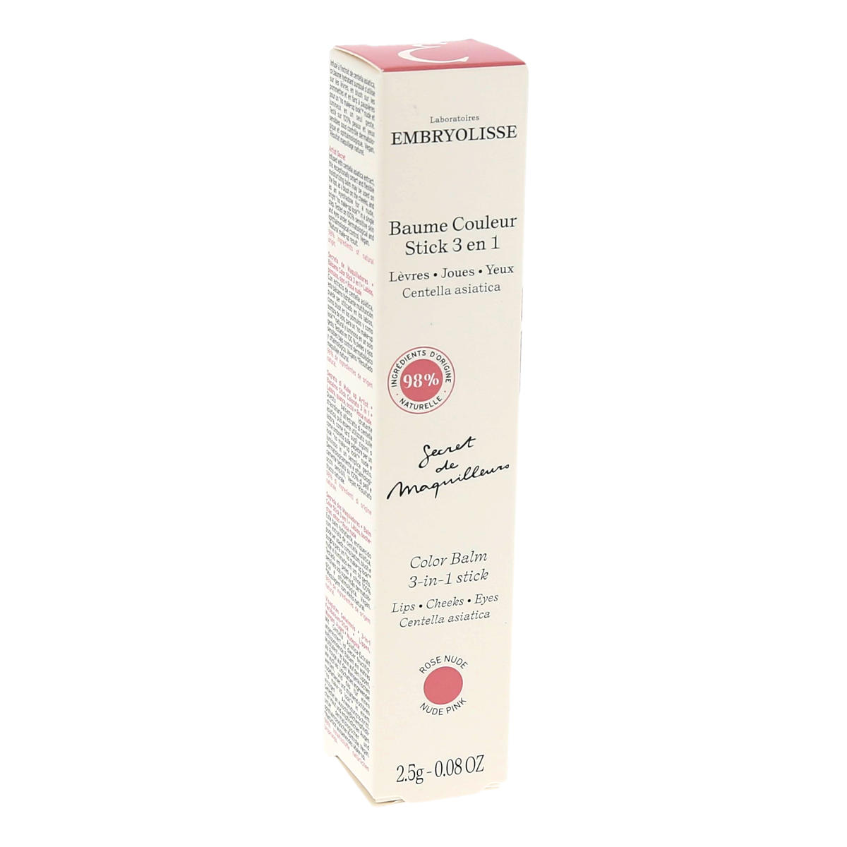 Embryolisse Secret de Maquilleurs, Baume Couleur Stick 3 en 1, Lèvres/Joues/Yeux, Teinte Rose Nude, stick de 2,5g