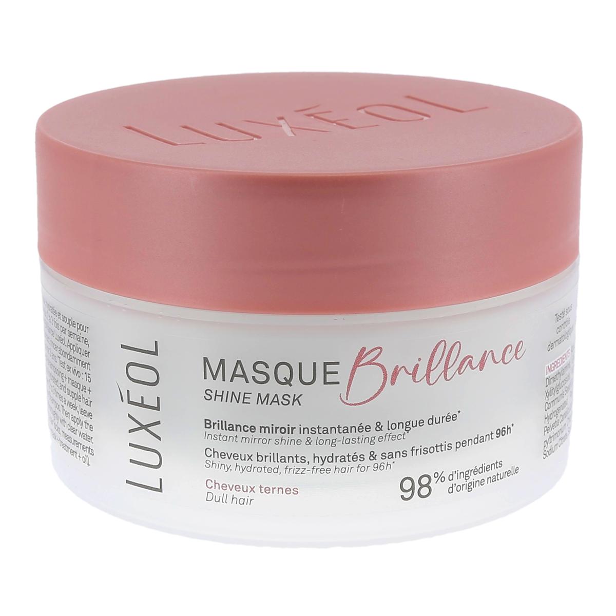 Luxéol Masque Brillance Cheveux Ternes, pour des Cheveux brillants/Hydratés/Sans frisottis, pot de 200ml