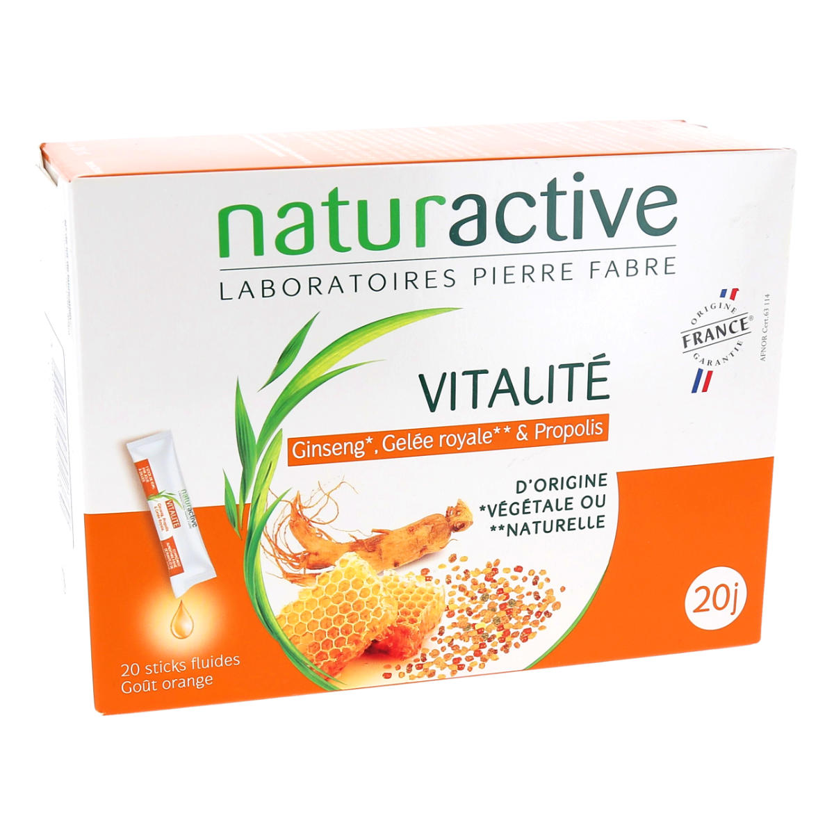 Naturactive Vitalité Ginseng/Gelée Royale/Propolis, goût orange, boite de 20 sticks fluides
