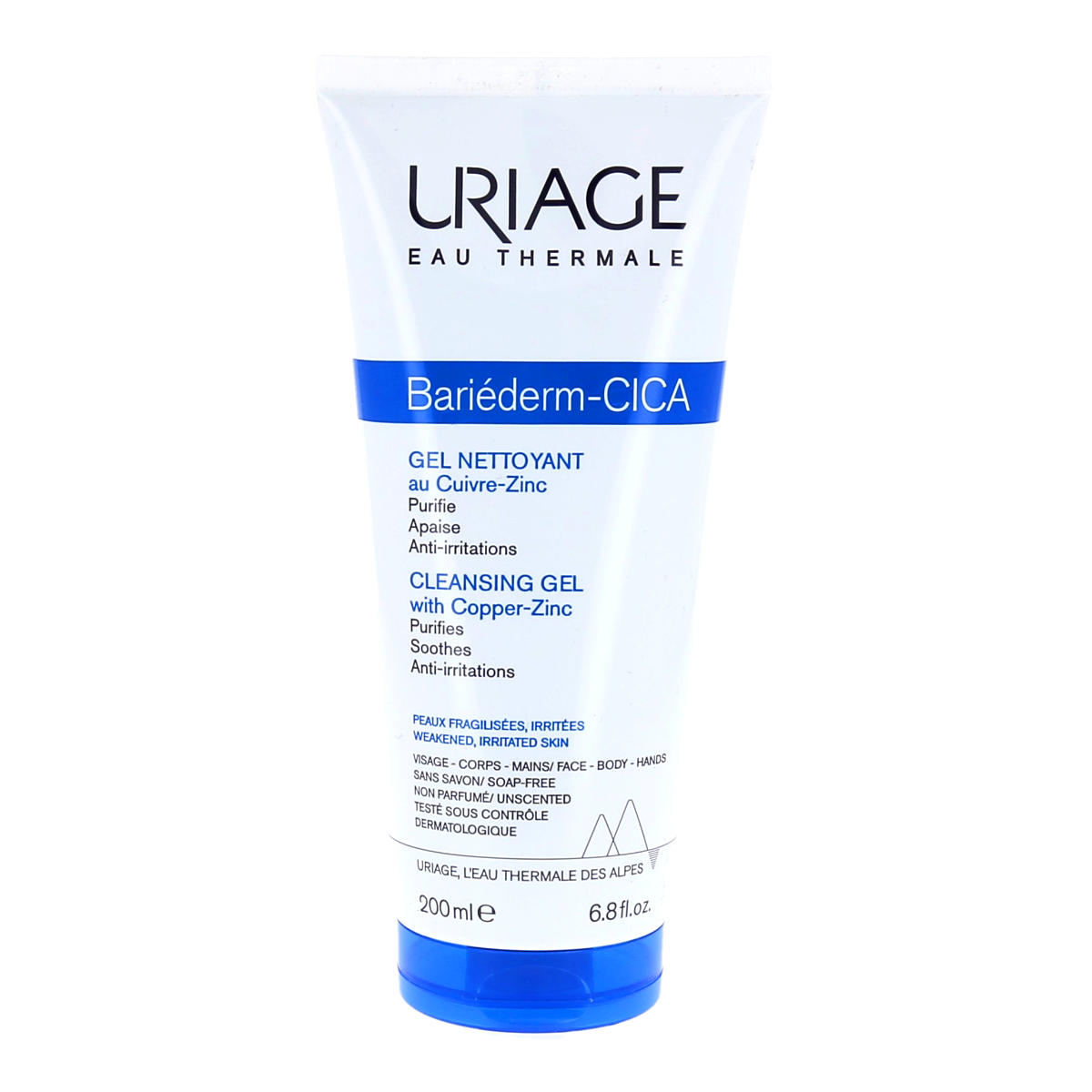 Uriage Bariéderm-CICA Gel Nettoyant au Cuivre-Zinc, Visage/Corps/Mains, Sans savon/Non parfumé, peaux fragiliséeset irritées, tube de 200ml