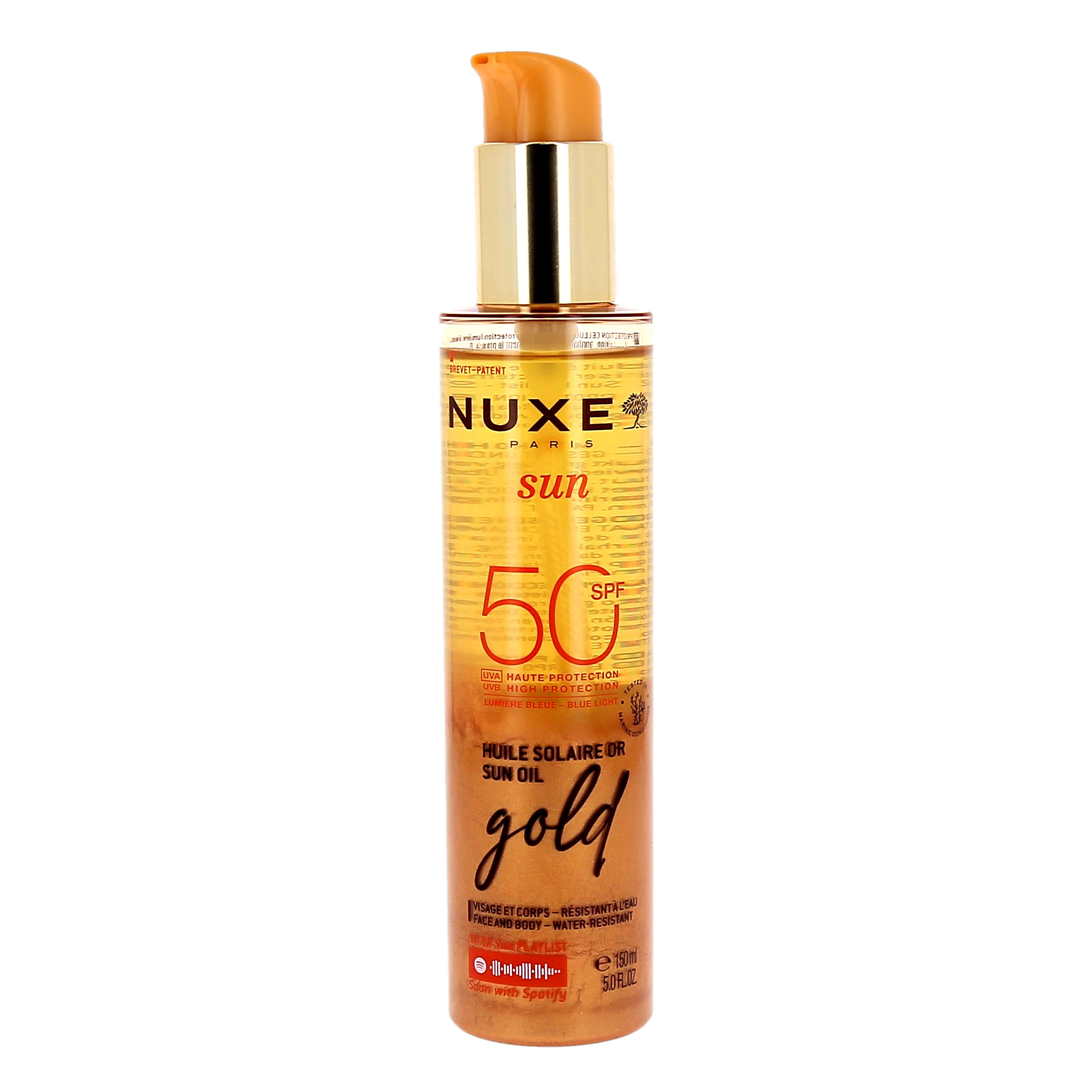 Nuxe Sun Huile Solaire Or SPF50, flacon-pompe de 150ml